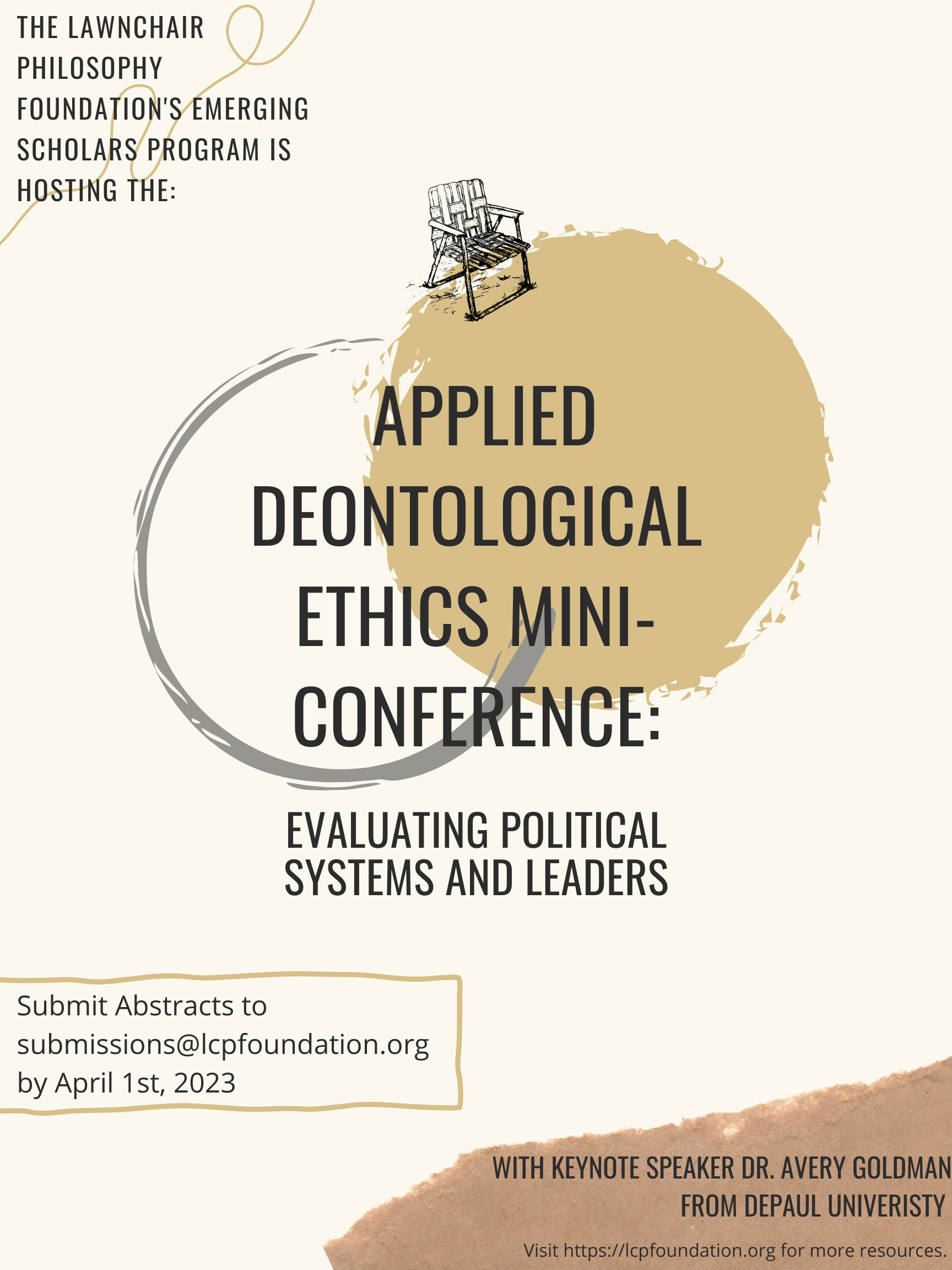 - Applied Deontological Ethics Mini-Conference, "Evaluating Political Systems and Leaders." The Lawn Chaiir Philosophy Foundation. https://lcpfoundation.org/